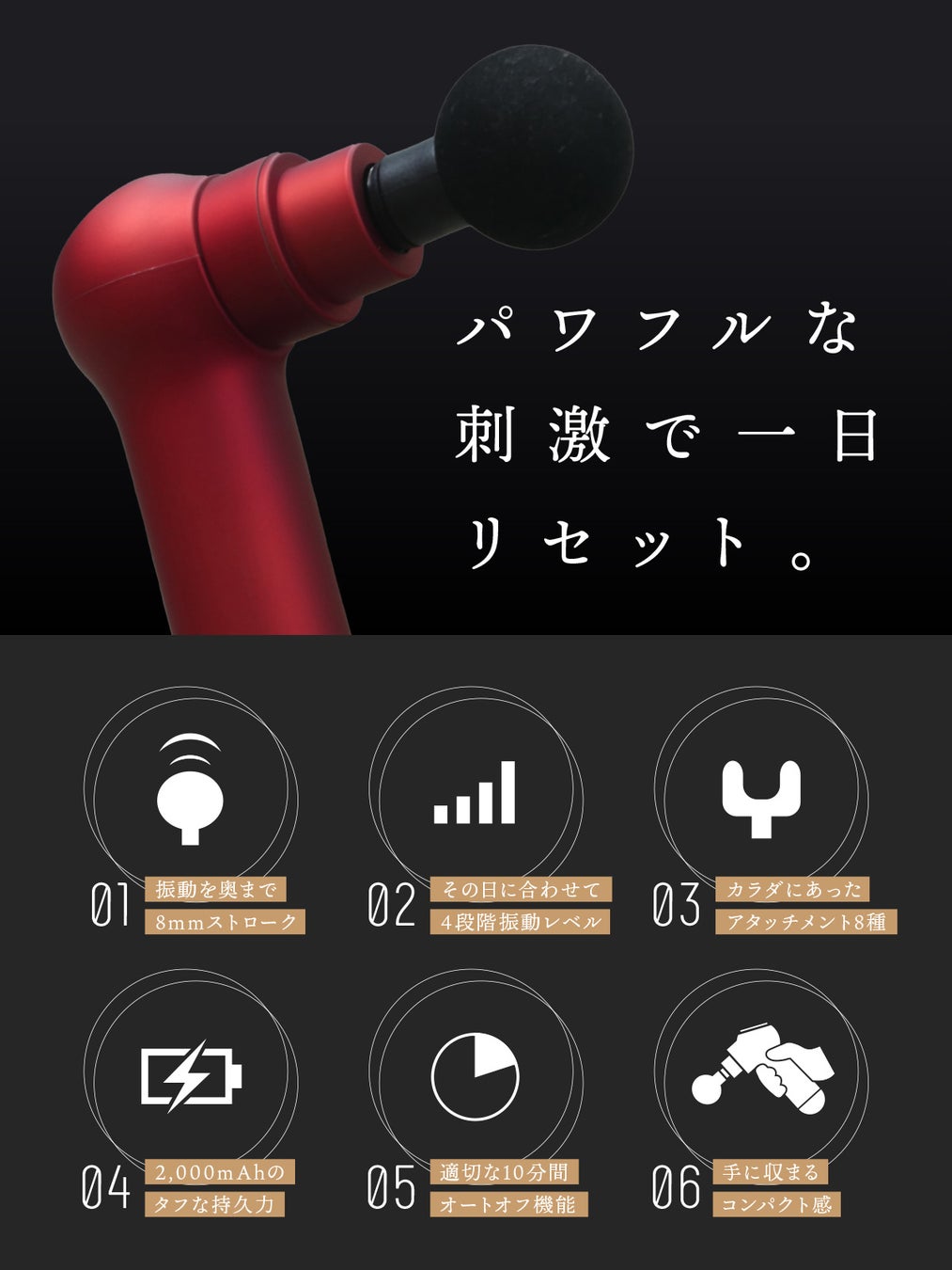 “どこにでも持ち運べていつでも使える”そんな筋膜リリースガンを目指して、あなたの毎日に手軽&本格的なセルフケアを提供します。