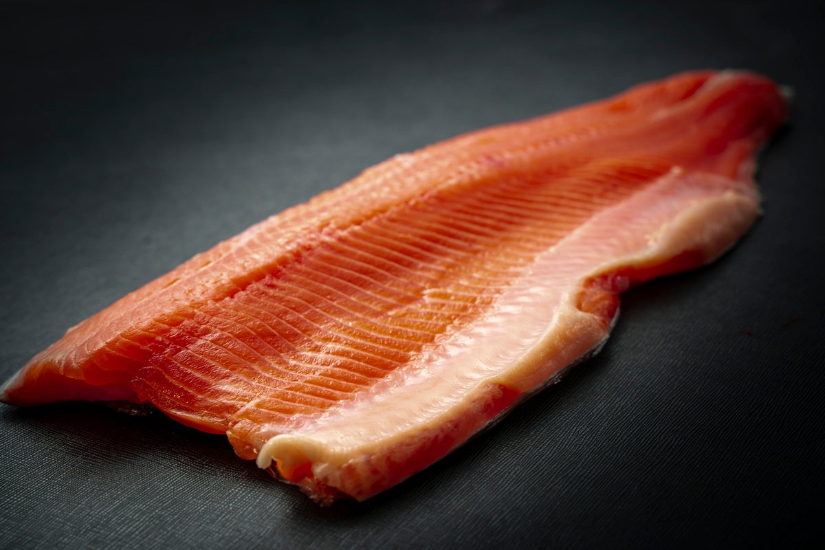 サーモン…国内の林養魚場で水、餌環境からこだわり丁寧に育てられた一級品サーモンをまるごと一本仕入れ、身の部分だけではなく内臓や皮など様々な部位を使用しています。