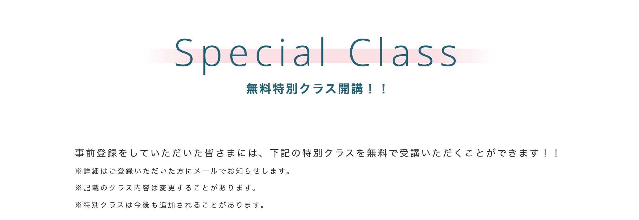 ※詳細は公式サイトをご確認ください。無料特別クラスは今後も追加される予定です。