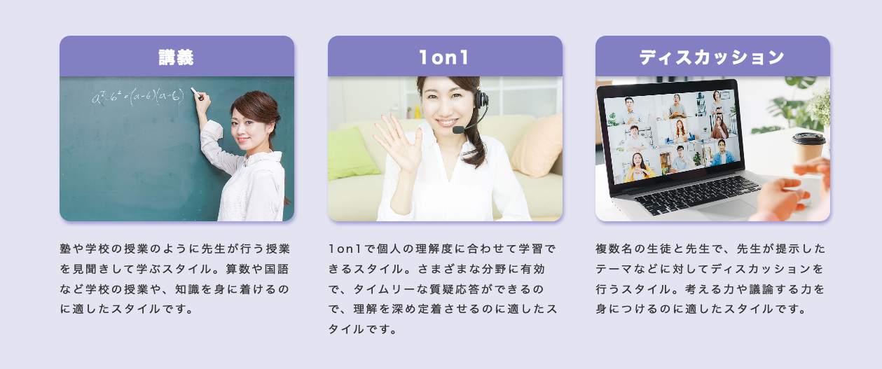 ただオンライン上でで知識やスキルをインプットするだけではなく、ライブのクラス上で行われるディスカッションを通じて、非認知能力(コミュニケーション力・思考力)を身に付けることが期待できます。