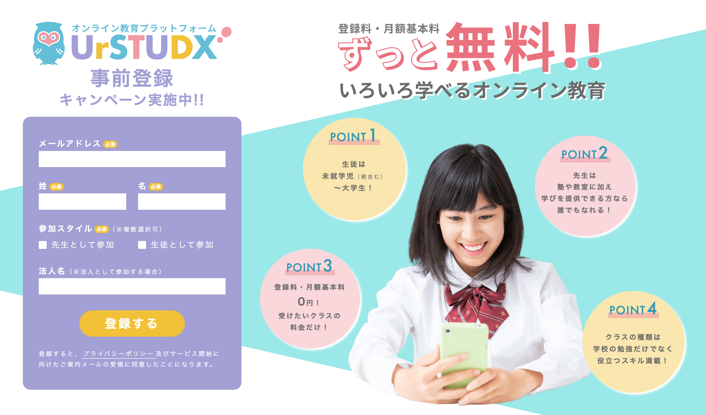 【無料特別クラス受講キャンペーンを開始】覚えるだけではなく、考える力を身につけるオンライン教育プラットフォーム「UrSTUDX」