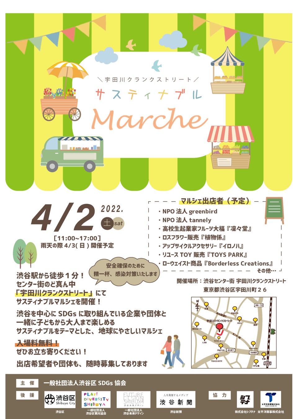 2022年4月2日(土)に宇田川クランクストリート(渋谷センター街)にて、サスティナブルマルシェを開催します。