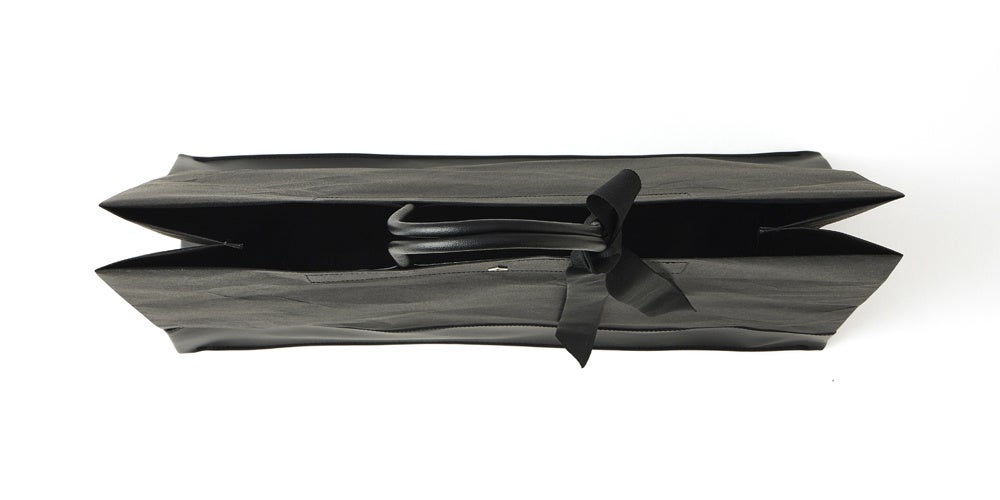 スーツにブリーフケースのスタイルも、これならカジュアルすぎず、クールにサブバッグとしてお使いいただけます。書類をごっそり入れても破れず、持ち手も付け根も丈夫です。紙袋のようで紙袋ではないのです。紙袋なんですけれど。