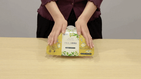 コロナ禍の中、手指消毒が生活に定着いたしました。新しい生活様式の中にも地球環境への思いを、コンセプトに、ピュアリーフ エコでは紙容器を採用いたしました。これにより、地球上の限られた資源である石化由来材料の使用を減らすことができます。また、紙であるために、簡単に折りたたむことができ、捨てるときもかさばりません。使用後は燃えるごみとして廃棄可能です。
