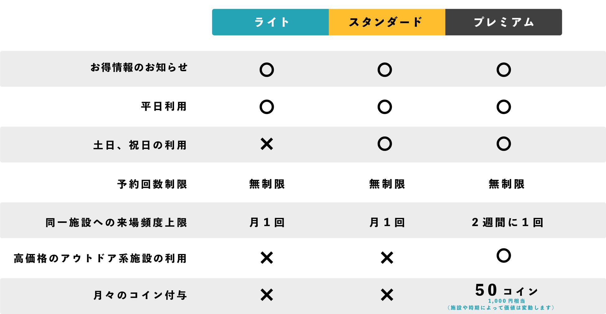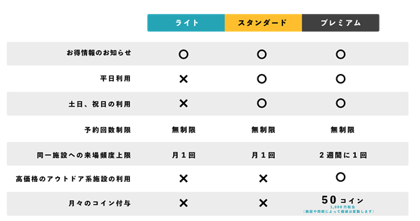 ※同一施設には月に1回までの来場となります。(プレミアムプランは2週間に1回まで)