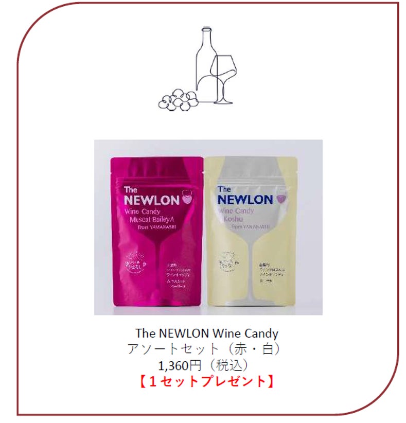 概要:ワインキャンディをWEB通販< The NEWLON Candy Shop >からお買い上げの方にもれなく、