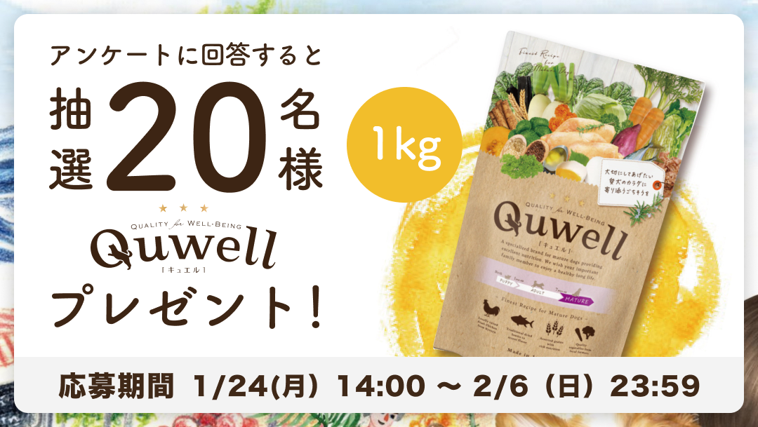 【発売2か月で早くも5,000食突破】マチュア犬=7歳以上の愛犬に大好評!Quwellが抽選で当たる!