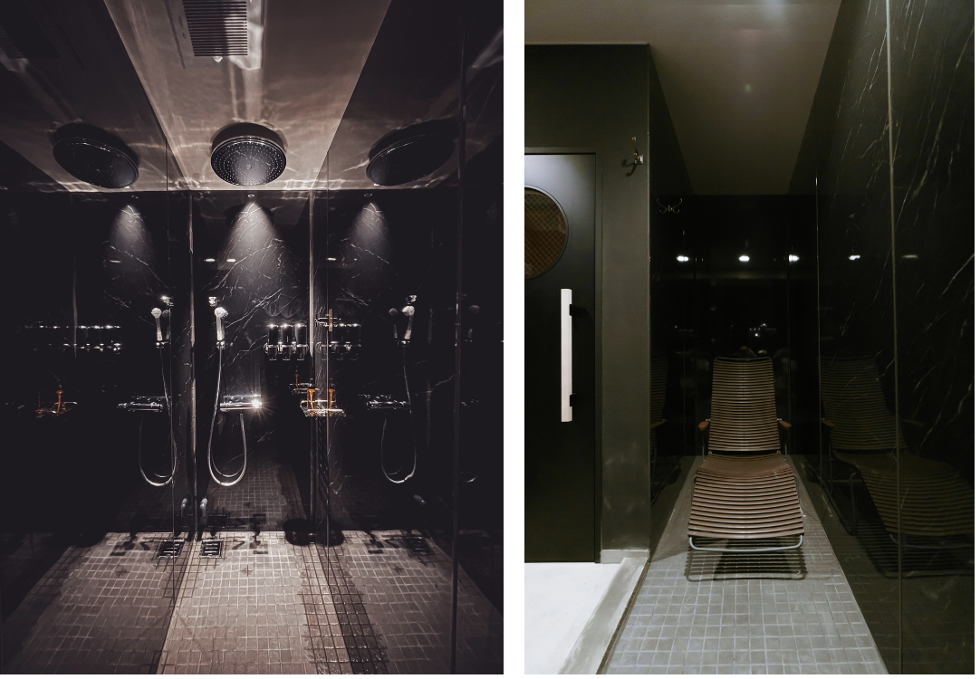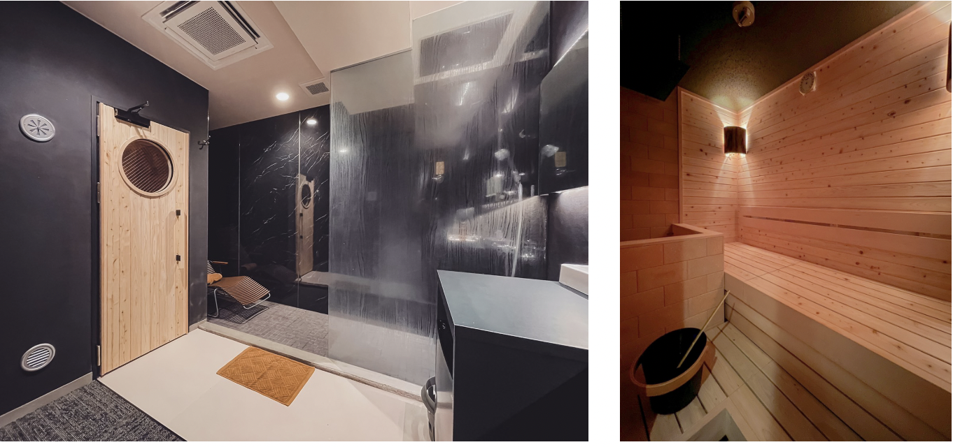 日本国内に数少ないサウナ専門の職人によるこだわりのハンドメイドのサウナ室は檜の板張りづくりです。サウナ室内も広さにこだわり全室約2.5平米の広々とした空間に長さ200cm×奥行き60cmのベンチを設置しているため、お一人様利用としては贅沢なサウナ室空間となっております。新設サウナならではの檜の香りを堪能しながら、ご自身のスタイルに合わせてゆったりとおくつろぎください。