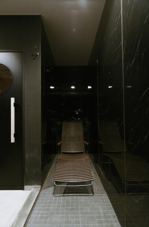 休憩スペースには、北欧から直輸入したこだわりの椅子を設置。深く腰をかけてリラックスしていただくことで、より一層「ととのう」ことができます。