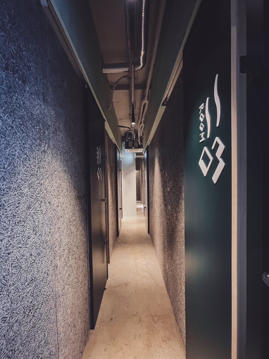 5室ある個室は広さにとことんこだわり最大で10.5平米とゆったりお過ごしいただける贅沢な空間となっております。室内に大きな鏡や高機能ドライヤー(ダイソン)などを完備しており、ゆっくり身支度をしていただけます。お飲み物を冷やせる冷蔵庫も全室にご用意しております(飲み物は入り口の非接触タイプの自動販売機にてお求め頂けます)。