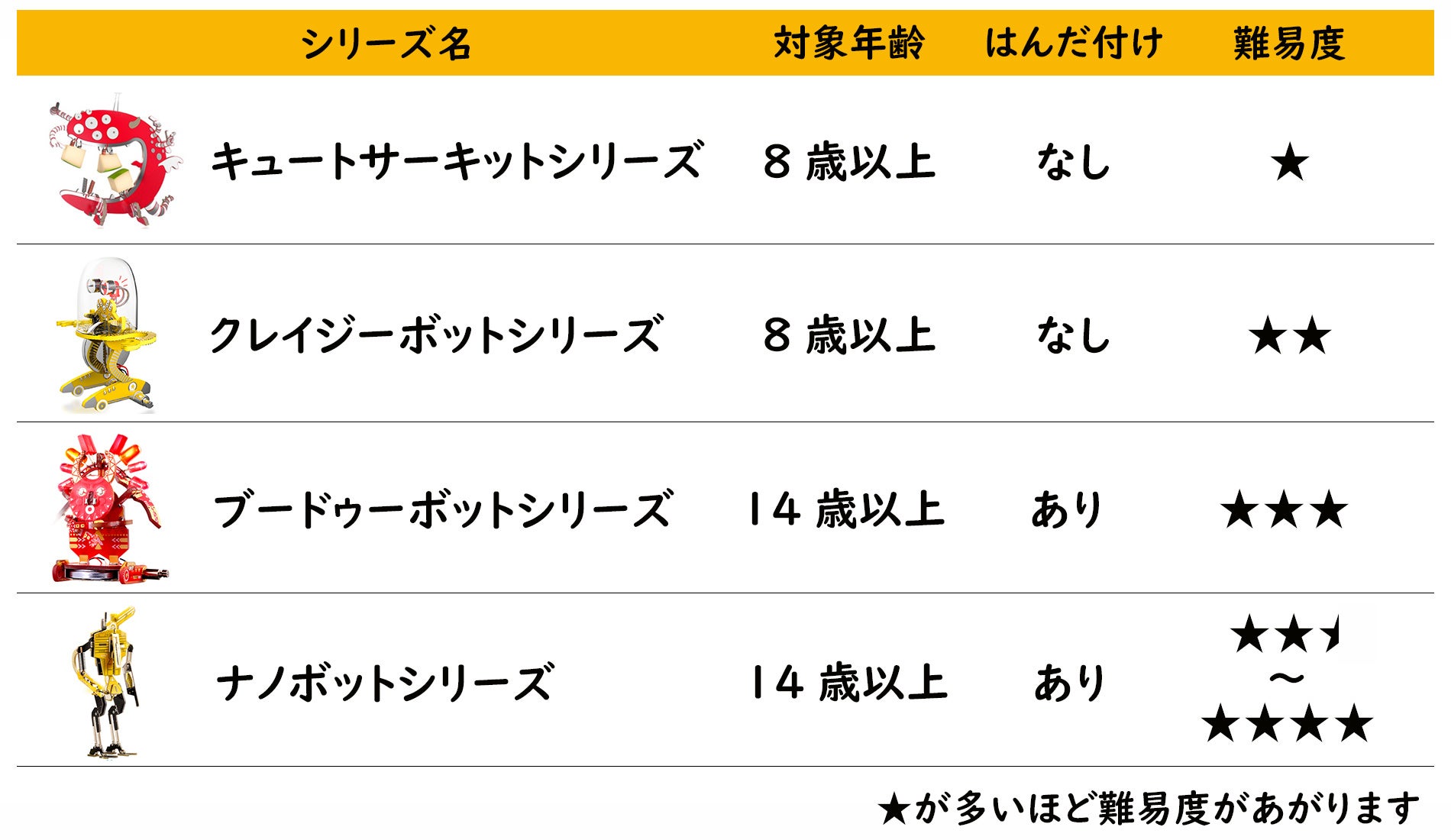 今回は難易度に応じて4つのシリーズをご用意しました。各シリーズの誕生秘話や各ロボットのオリジナルストーリをぜひお楽しみください。