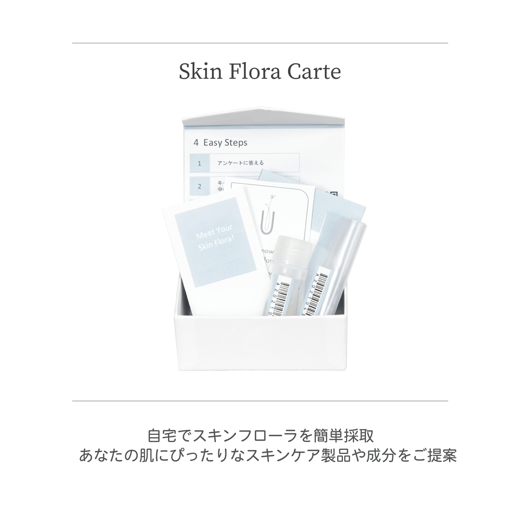 スキンフローラカルテは、肌の菌バランスであるスキンフローラを検査し、その人にピッタリ合ったスキンケア成分やスキンケアアイテムをご提案するサービスです。