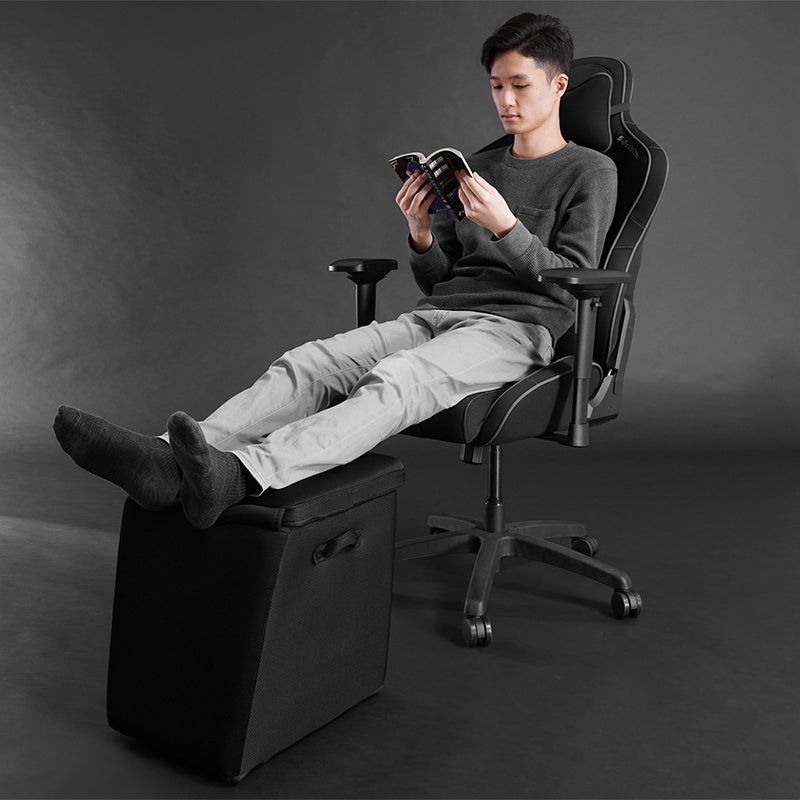 コンンパクトなサイズ感と、オットマン(スツール)としても使える2Way仕様を採用。マッサージャーとしての使い方はもちろん、普段のゲームプレイ時は足置きとして活用できます。クッション入りのフタを閉じてチェアと並設すれば、座面を拡張して無理なくあぐら姿勢をとることも可能です。