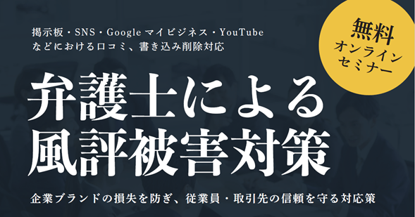 『風評被害対策セミナー(無料・オンライン)―企業ブランドの損失を防ぎ、従業員・取引先の信頼を守る対応策―』を2月17日(木)開催