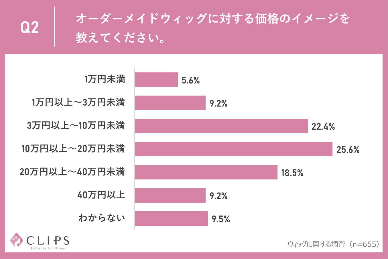 株式会社CLIPS(所在地:東京都渋谷区代々木3-57-7)は、ウィッグを購入または検討したことがある50歳~70歳の女性655名を対象に、ウィッグに関するアンケート調査を実施しました。
