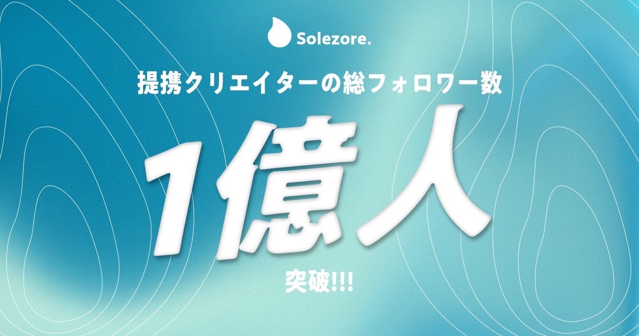 【株式会社solezore(ソレゾレ)】提携TikTokクリエイターのフォロワー総数-1億突破!
