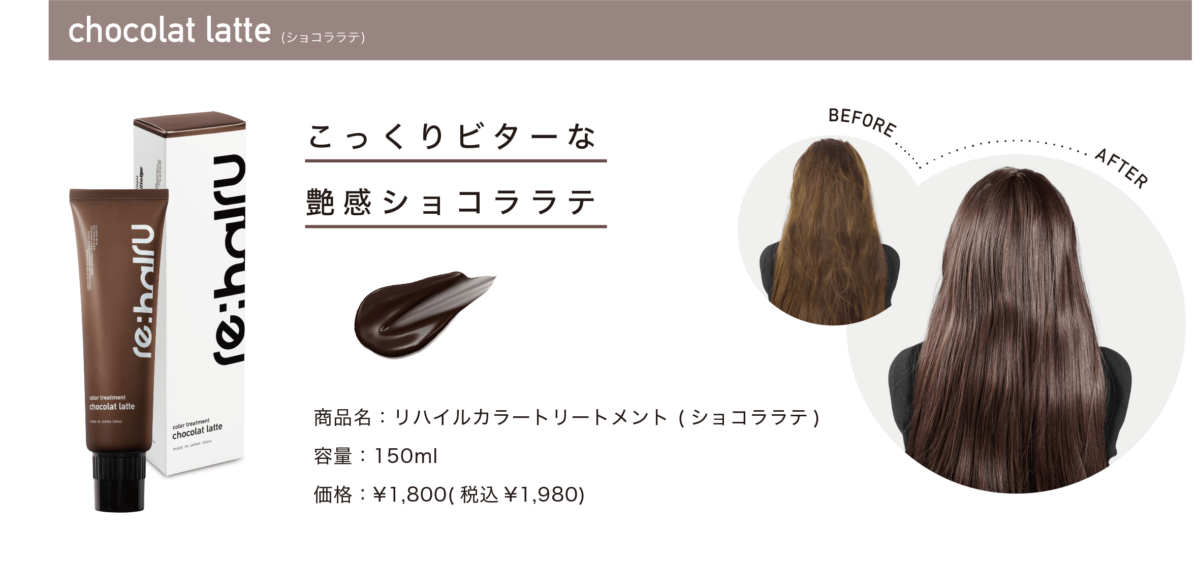 リハイルカラーシャンプーと合わせて使用することで、透明感ヘアカラーをオンチャージできます。2022年4月より全国バラエティーショップ・ドラッグストアにて発売開始。