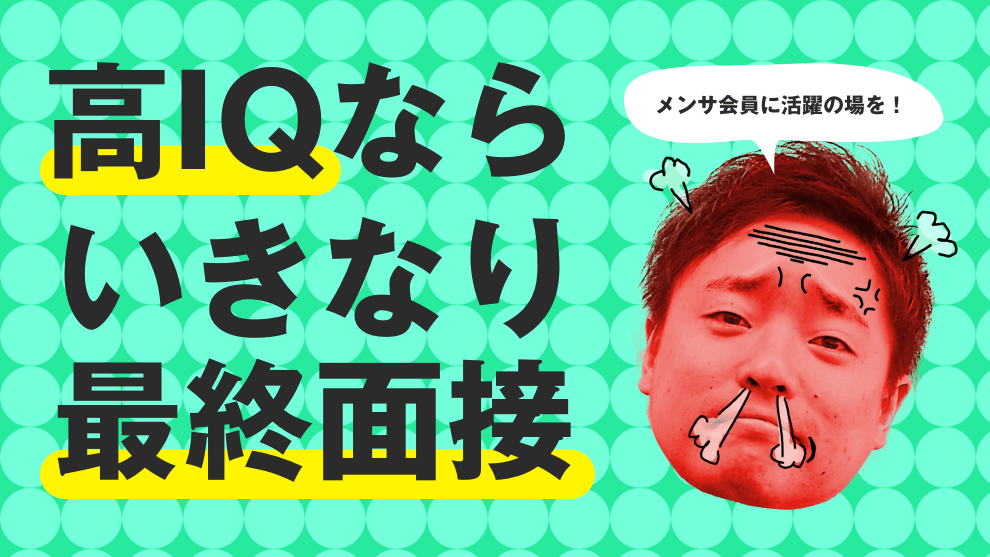 IQテストで130以上であれば速攻最終面接にご案内いたします。