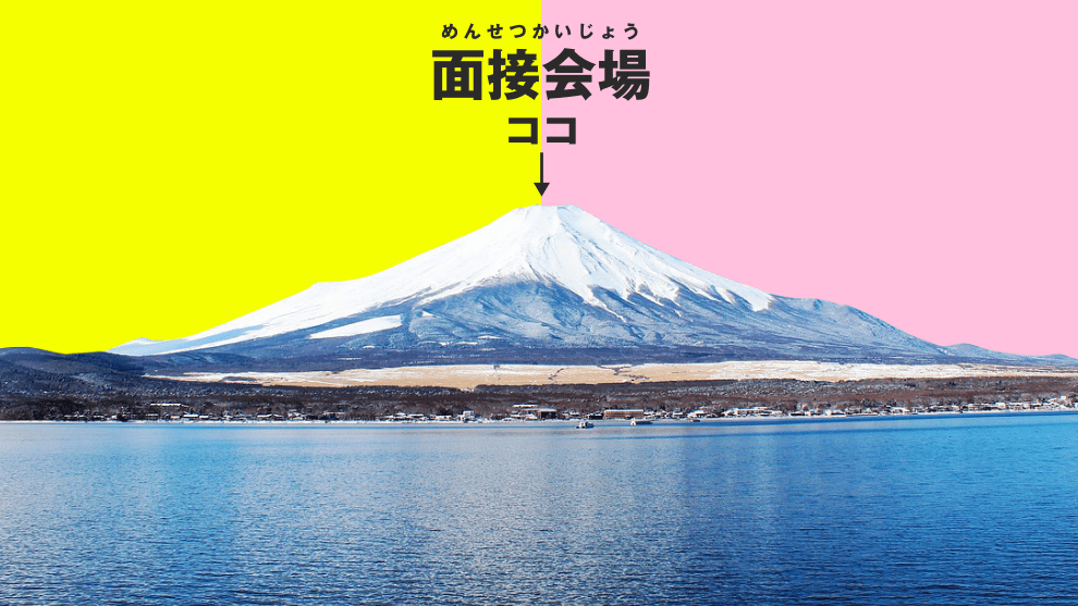 富士山の山頂で共同代表2名が先にお待ちしています。登頂してきた時点で高い体力と精神力が認められますので、ほぼ採用は決定しています。