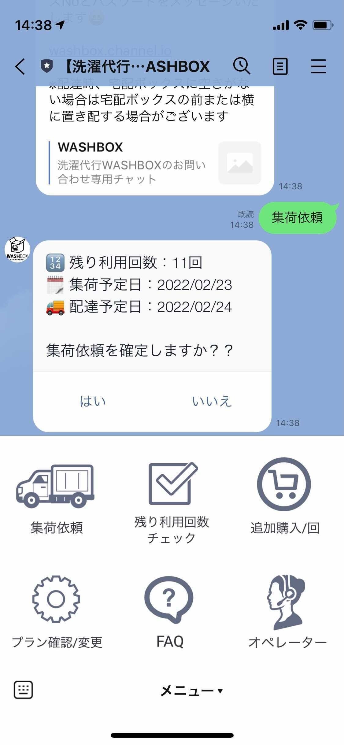 WASHBOX公式LINEアカウントより登録・注文(約3分)