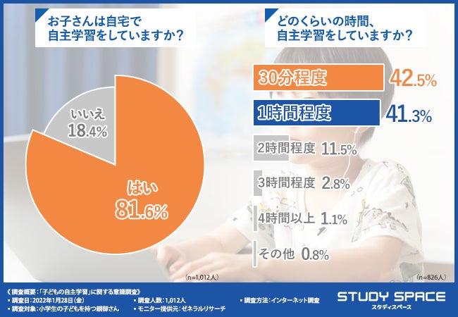 「お子さんは自宅で自主学習をしていますか?」と質問したところ、8割以上の方が『はい(81.6%)』と回答しました。
