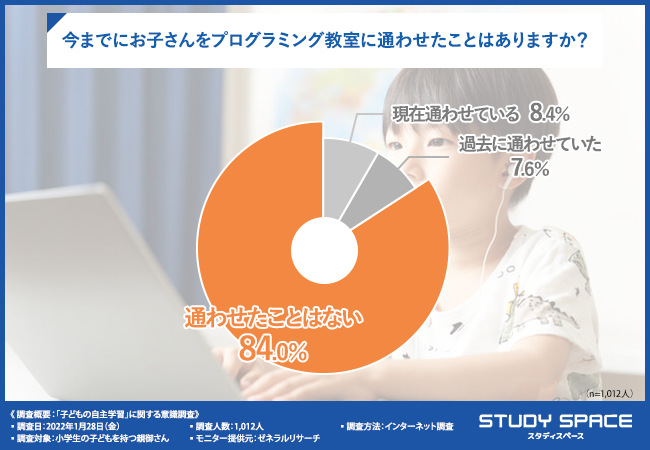 プログラミングの知識を取得することによって、アイディア次第でさまざまなものを造りだすことができますが、一体どのくらいの方がプログラミング教室にお子さんを通わせたことがあるのでしょうか?
