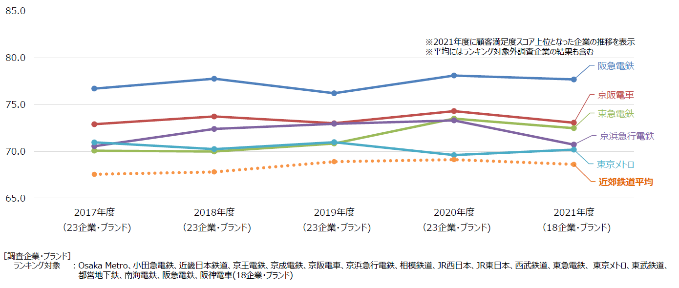 阪急電鉄 近郊鉄道業種 13年連続1位
