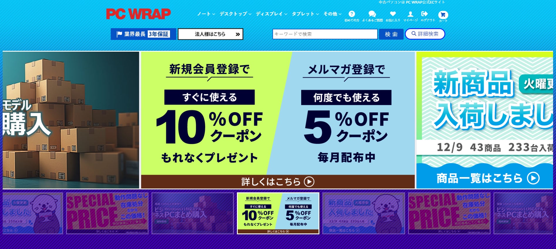 【最大51%OFF】中古パソコンショップのPC-WRAPでセールを2025年12月25日まで開催!