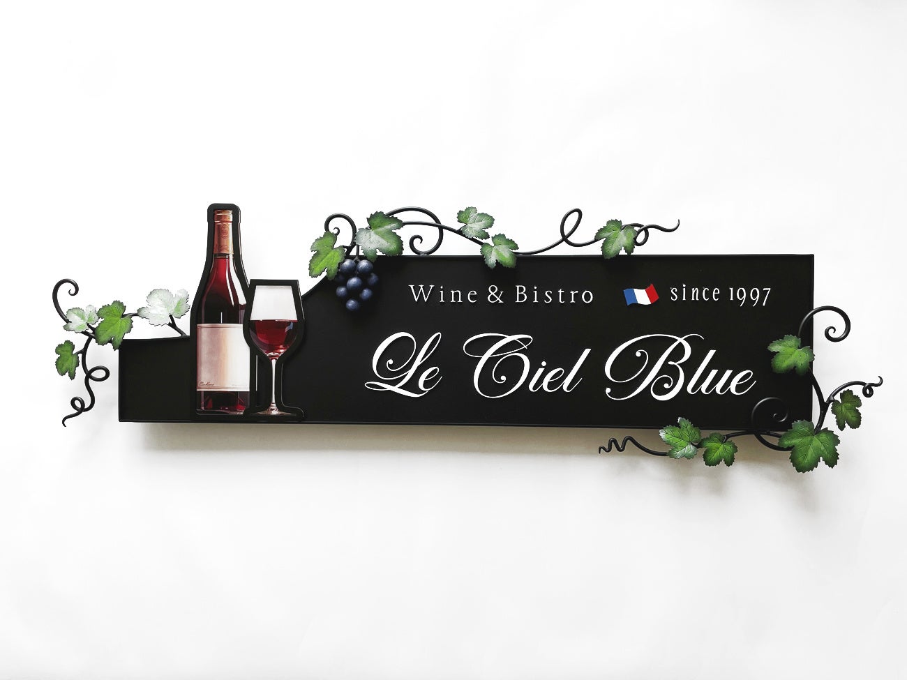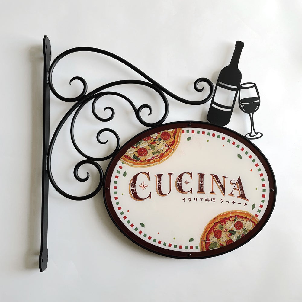 本製品は、個人経営の飲食店など、小規模店舗のファサード看板としても最適です。限られたスペースでも存在感を放ち、店舗の個性や雰囲気をしっかりと伝えることができます。