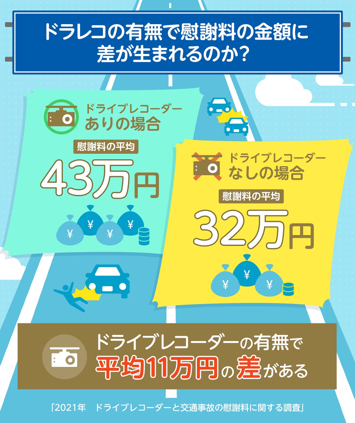 - ドライブレコーダーの有無で、慰謝料額に平均11万円の差がある