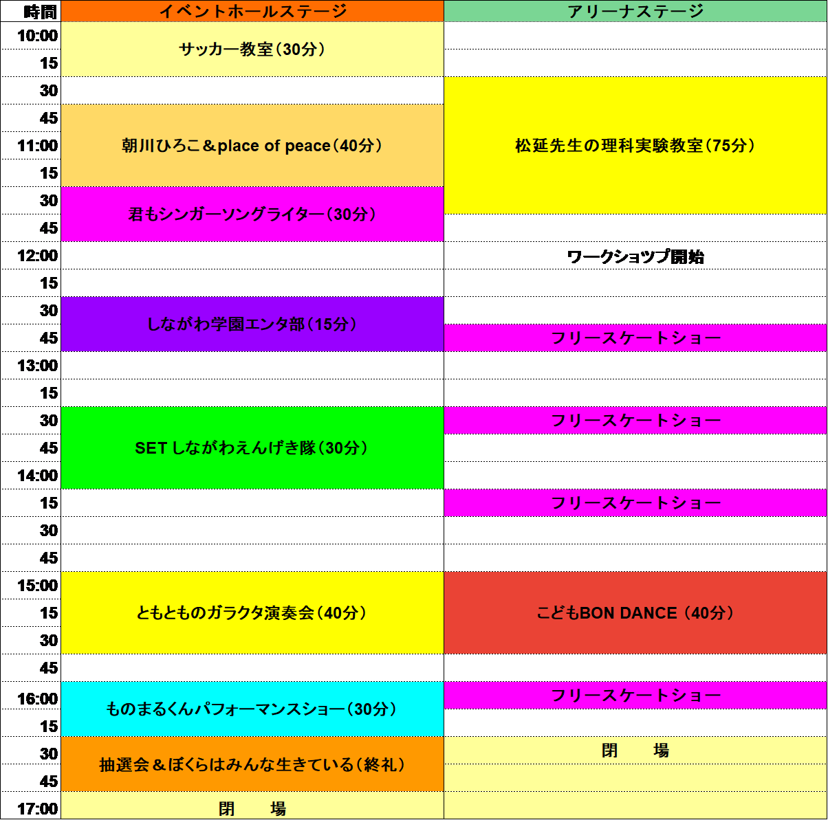 ◇主なプログラム内容(予定)【時間割】9:50開場 開演10:00〜17:00