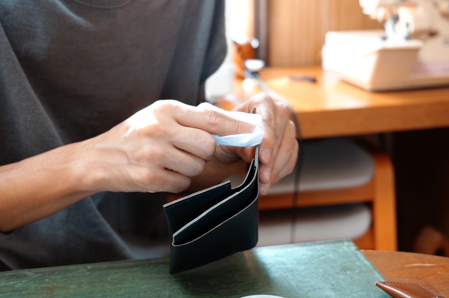 まだ27歳という若さですが、祖母の影響で7歳の頃から革製品作りを始め、21歳から本格的に革職人として活動をしています。若い発想力と、長年革製品に携わってきた確かな経験と技術が、この「minimal」に詰め込まれています。
