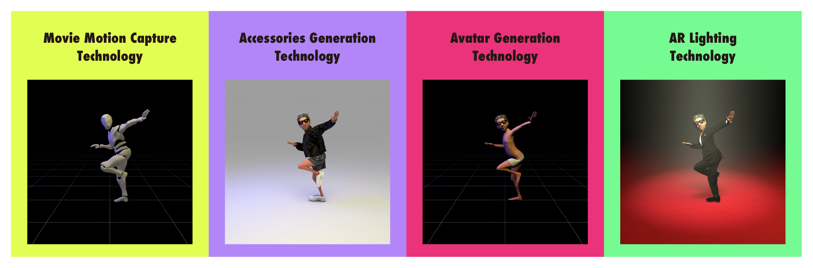 アバター、ウェア、モーション、アクセサリー、サウンド、ライティング、これらの要素を組み合わせることにより、単なる3Dアバターではなく、一連のパフォーマンスを表現するアバターが生み出されます。