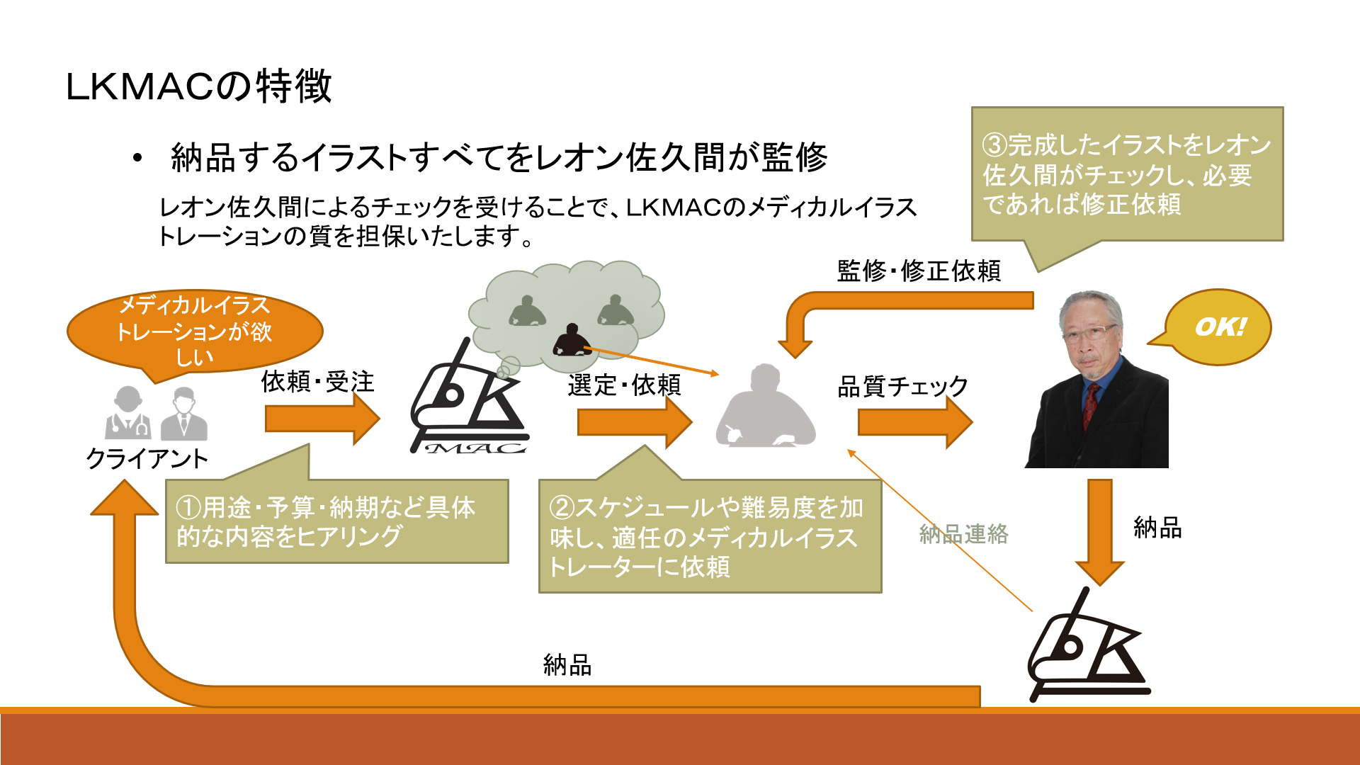 「レオン佐久間のイラストを見たことのない外科医はいない」とも言われる、日本におけるMIrの第一人者が、LKMACのトップで制作部門をけん引しています。