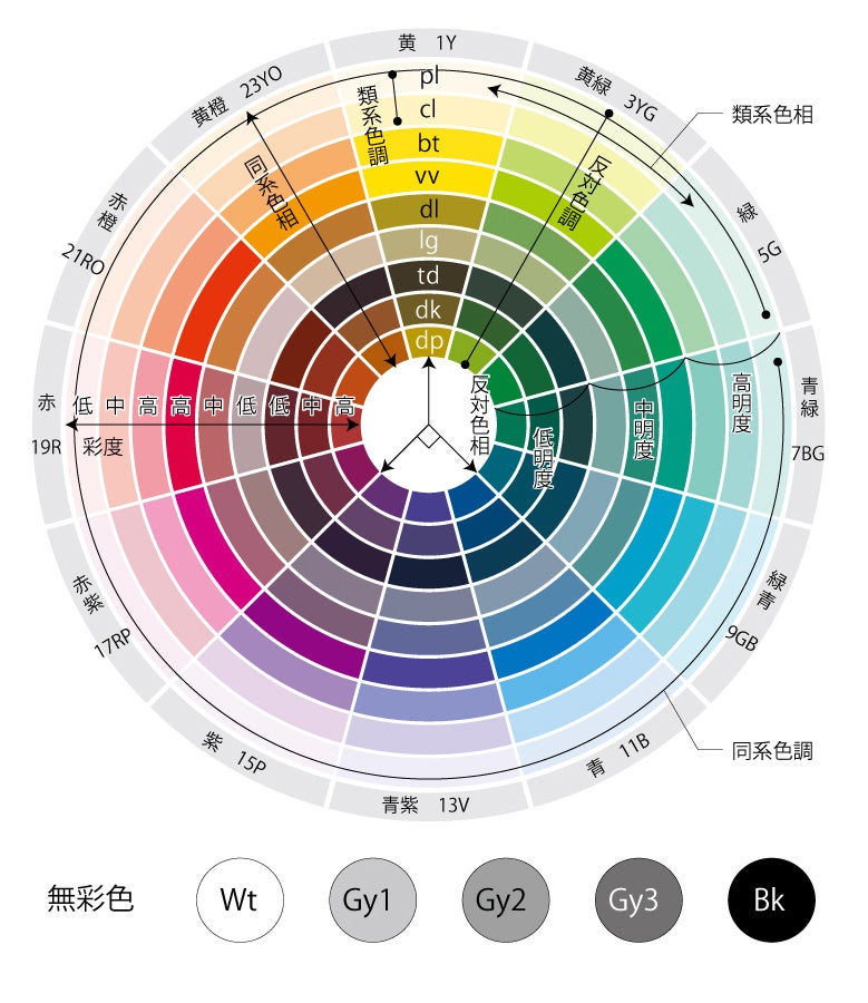 1.色と色との組み合わせを配色理論に基づいて行うことができます。