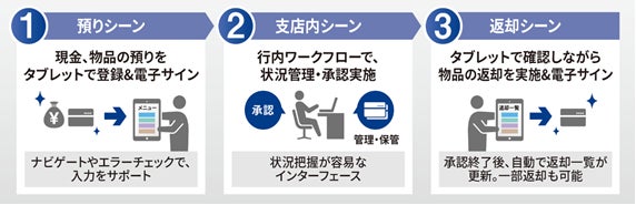本システムは、金融機関の渉外担当者が顧客から物品・現金等を預り、その後、保管・返却を行うまでの業務を効率化することを目的としたシステムであり、Salesforce Platform上で動作します。