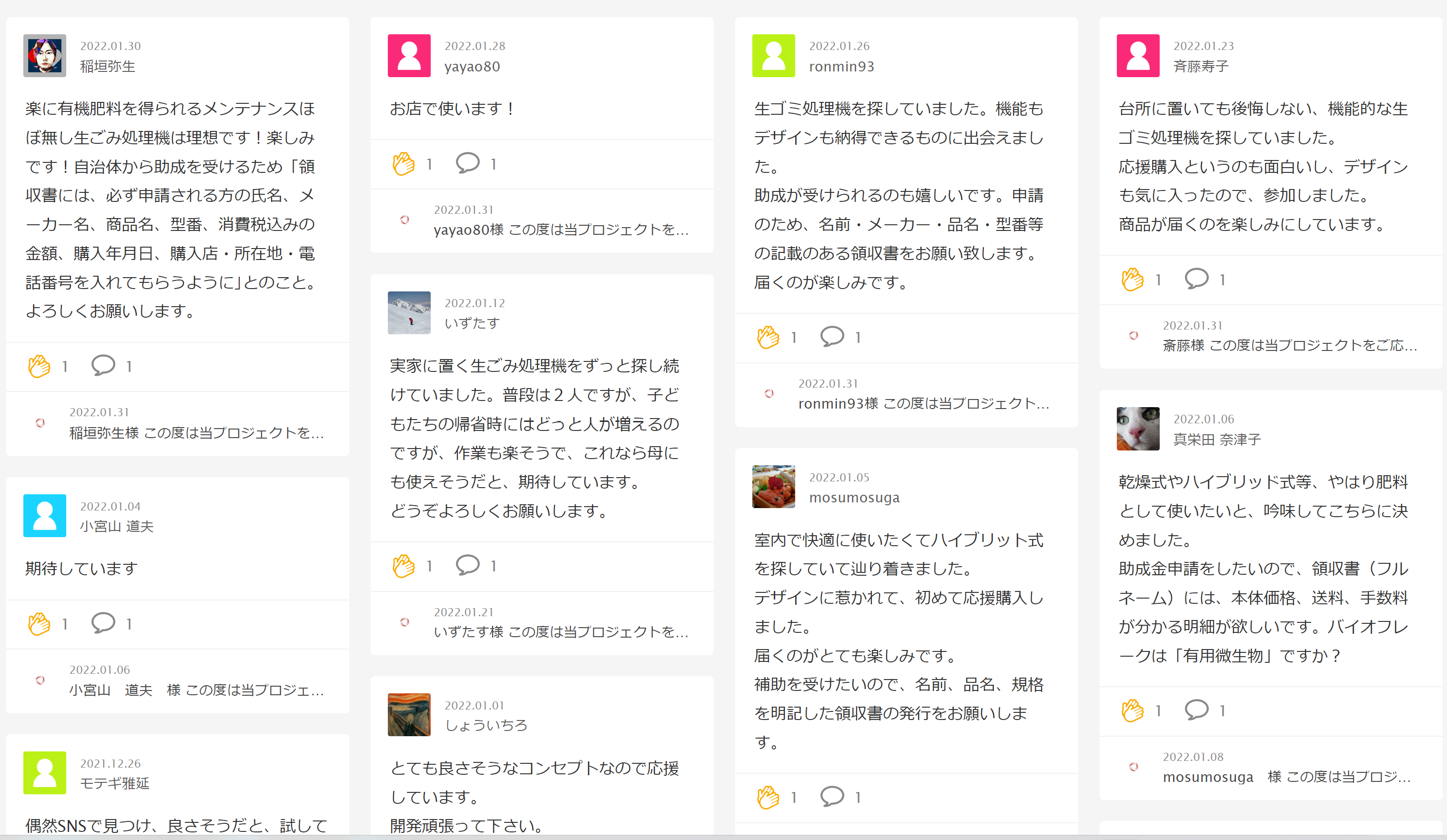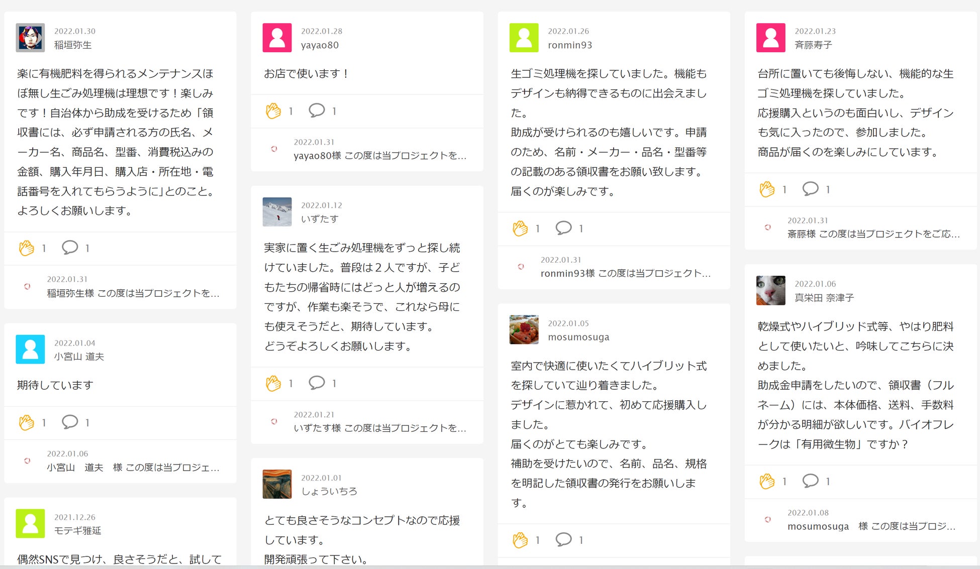などといったメッセージをご支援いただいた皆様から頂いております。