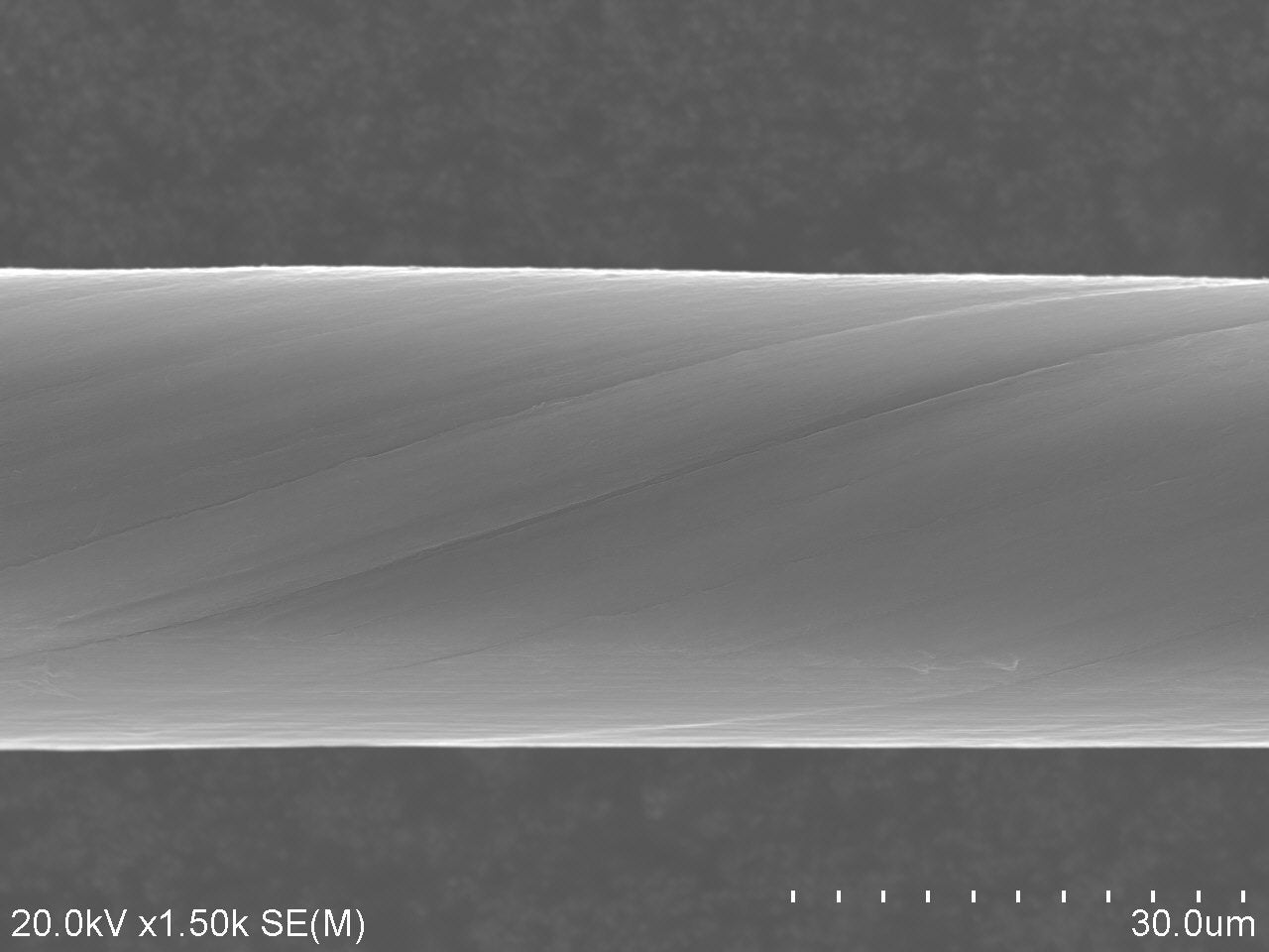 カーボンナノチューブ(CNT)は高強度、超軽量、耐屈曲性、優れた熱伝導性、導電性を兼ね備えた次世代の材料です。そのカーボンナノチューブ(CNT)をワイヤ化しました。シームレスで100m級の長尺化を実現しています。引っ張り強度は800MPa級(線径30μm)です。次世代のワイヤをぜひご覧ください