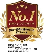 日本トレンドリサーチ(運営会社:株式会社NEXER)がおこなったITスクールについての調査において、株式会社HATCH(所在地:大阪府大阪市、代表取締役:渡邊奈津美)の運営する『ウェブフリ』が、下記4項目で第1位を獲得しました。