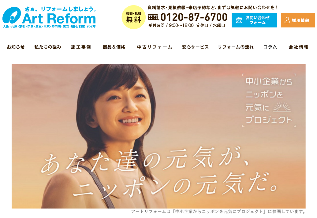 創業70年を誇るリフォームプロフェッショナル集団のアートリフォーム、永作博美さんが公式アンバサダーを務める「中小企業からニッポンを元気にプロジェクト」に参画