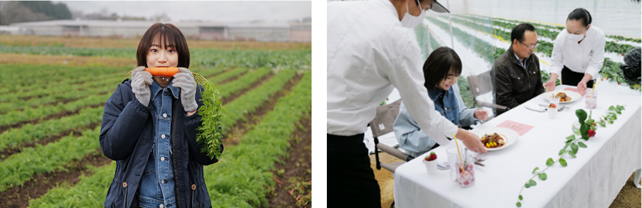郡山市・鈴木農場にて自ら収穫した生野菜を丸かじりし、思わず「あまいっ!」と驚く武田さん。シェフが料理を振る舞うFood Campでは、珍しいイチゴ料理に大興奮。採れたての食材のおいしさに感動した様子。孫の手トラベル社長との対談では「福島の素晴らしさを自信と愛を持って伝えたい」と地元・福島への想いを寄せた。これら事業の成り立ちとこれからの想い、支援事業についても収録されている。