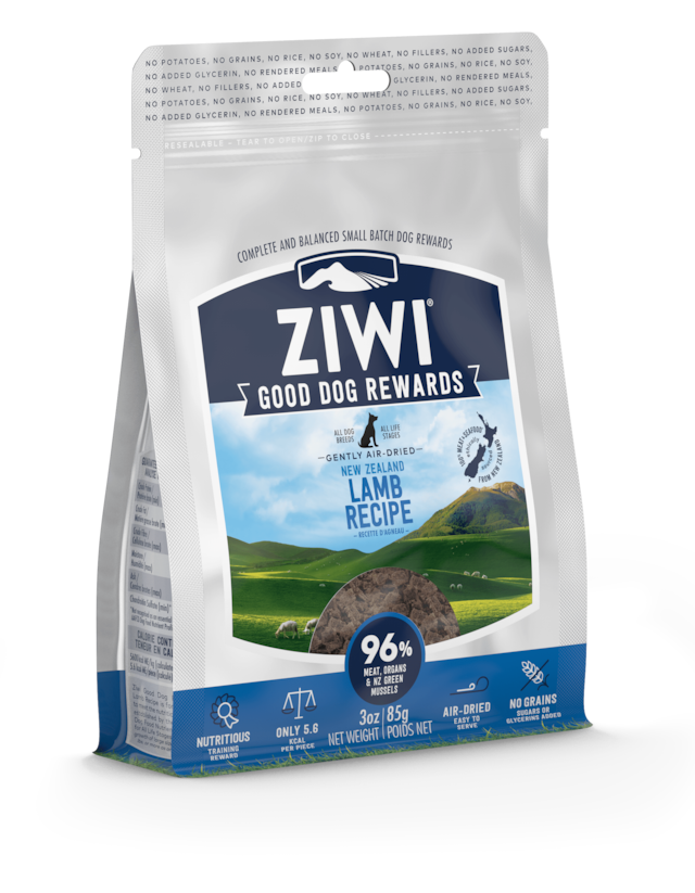 私たちのZIWI®ラム エアドライ・ドッグトリーツはトライプを含む高品質なニュージーランド産のラムと緑イガイを96%配合しています。私たちのトリーツはニュージーランドの特別な原材料の栄養を閉じ込めるため、ゆっくり時間をかけてエアドライされています。レシピにはさらに厳選したビタミンやミネラル、ケルプ、チコリーやパセリも配合しています。愛犬へのトレーニングのご褒美として、国際的なドッグトレーナーであるイアン・ダンバー氏にも推薦していただいております。