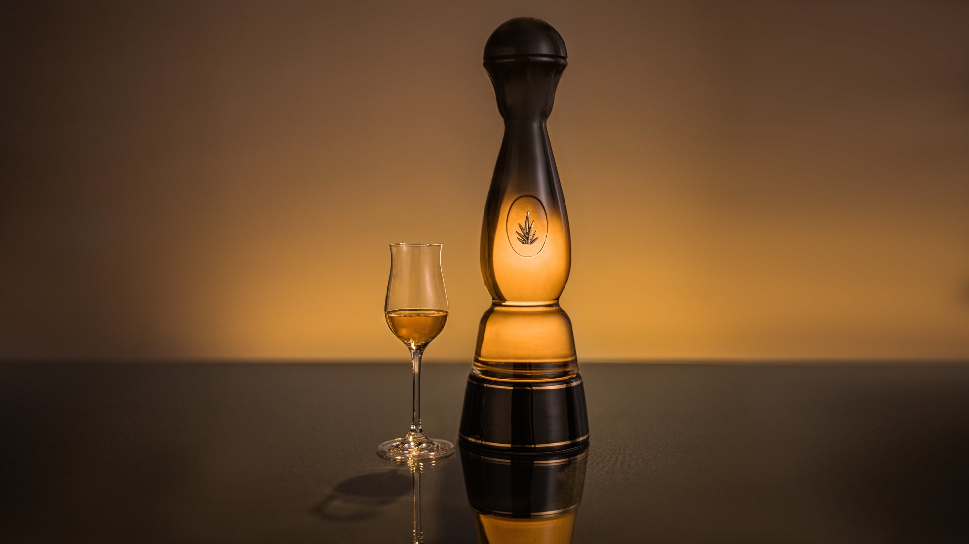クラセアスール・ゴールドの美しさを象徴するボトルは「メキシコの夕陽」をイメージして創られました。煌めくガラスと漆黒のセラミックの組み合わせから出来ており、鮮やかな黄金色は夜の闇を包み込む光、地球に降り注ぐ柔らかな陽光、そして夕日が沈みゆく大地に輝くアガベを表現しています。ボトルを手にとりグラスに傾けて注ぐ動作さえも優雅で特別な時間に変えてしまう魅惑のボトルへと仕上げました。