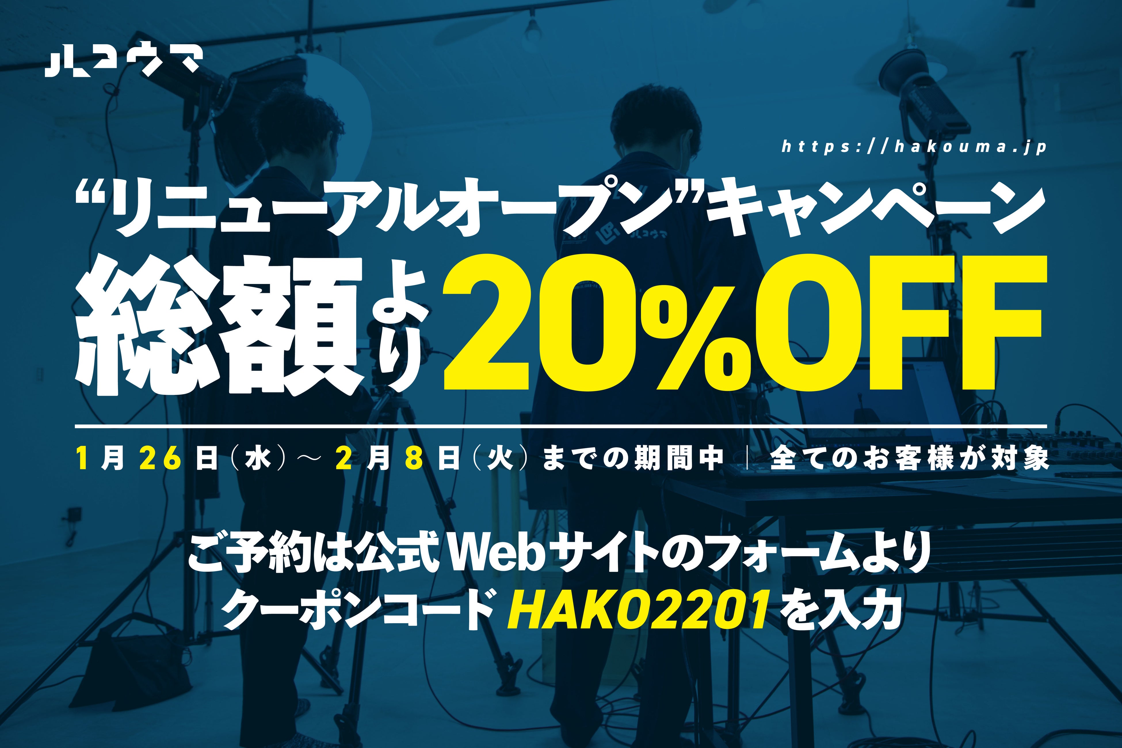 【20%OFFキャンペーン】大阪市北区天満のライブ配信&撮影スタジオ「ハコウマ」がリニューアルオープン