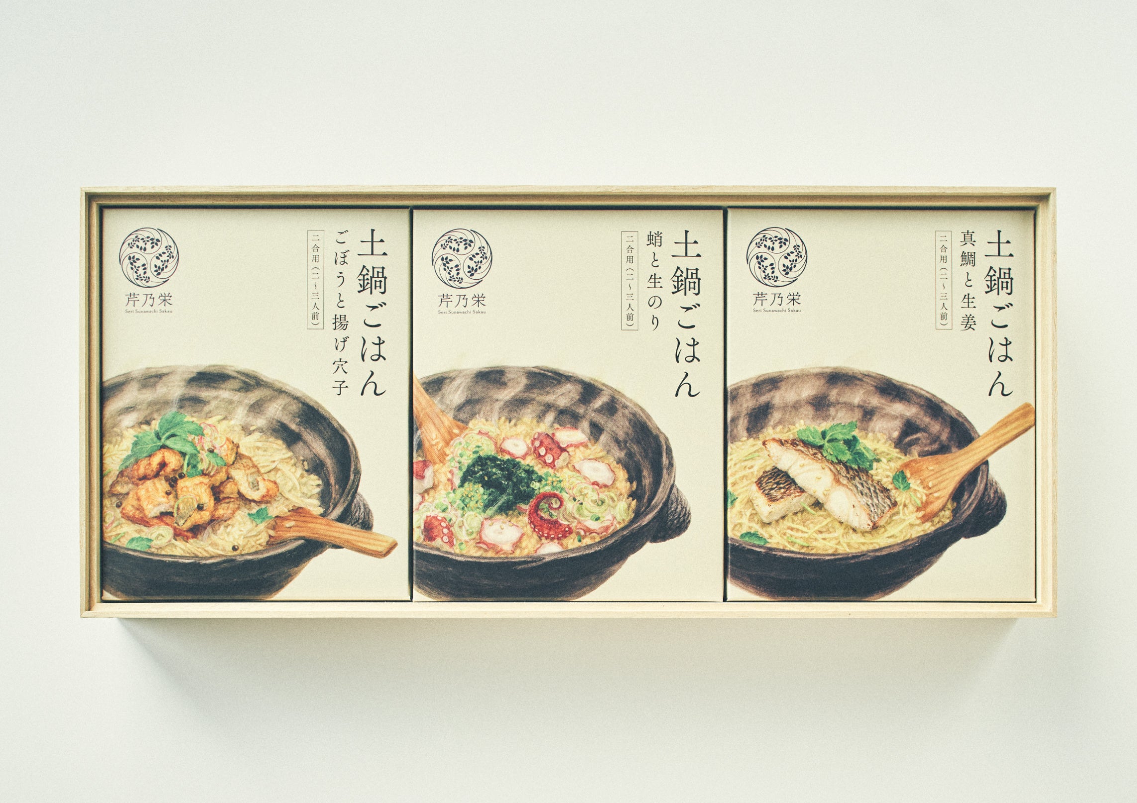 具材はすべて国産の原料にこだわり、メインとなる真鯛や穴子などの魚介については天然のものを使用しています。出汁ももちろん、普段お店で使っている昆布や鰹節などを使用。「朝お店で引いた出汁」そのものの味を、という想いを再現性高く叶えることができました。また、おいしそうなイラストをあしらった品のあるパッケージデザインにもこだわり、贈答用の桐箱もご用意しました。大切な人への贈り物にもおすすめです。