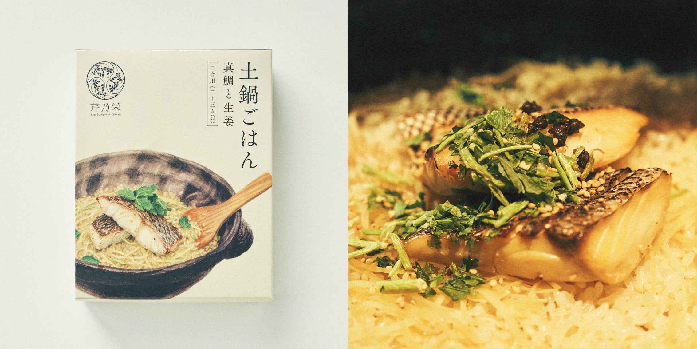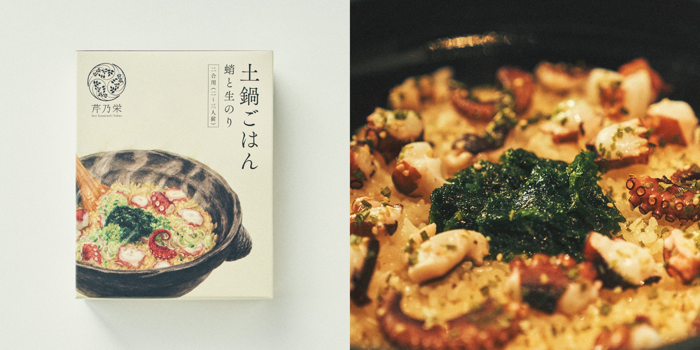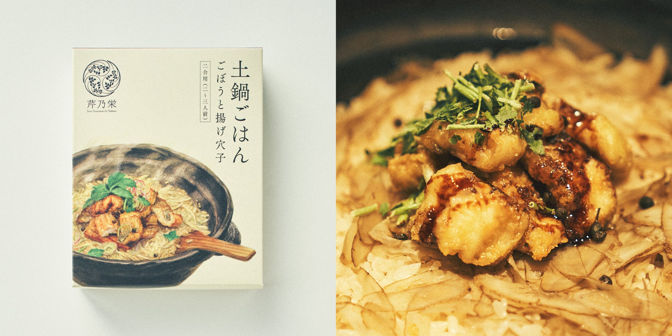 芹乃栄がお届けする第一弾となる商品は、お店でも人気の土鍋ごはんを再現する商品です。一般的な炊き込みごはんの素と異なり、具材をまるごと炊き込むのではなく、後乗せ具材やあしらいの薬味など細部までこだわりつつ、簡単な調理法でお店の味を再現。アウトドアやホームパーティーのお持たせなどでも、その場を華やかにする料理としておすすめの商品です。