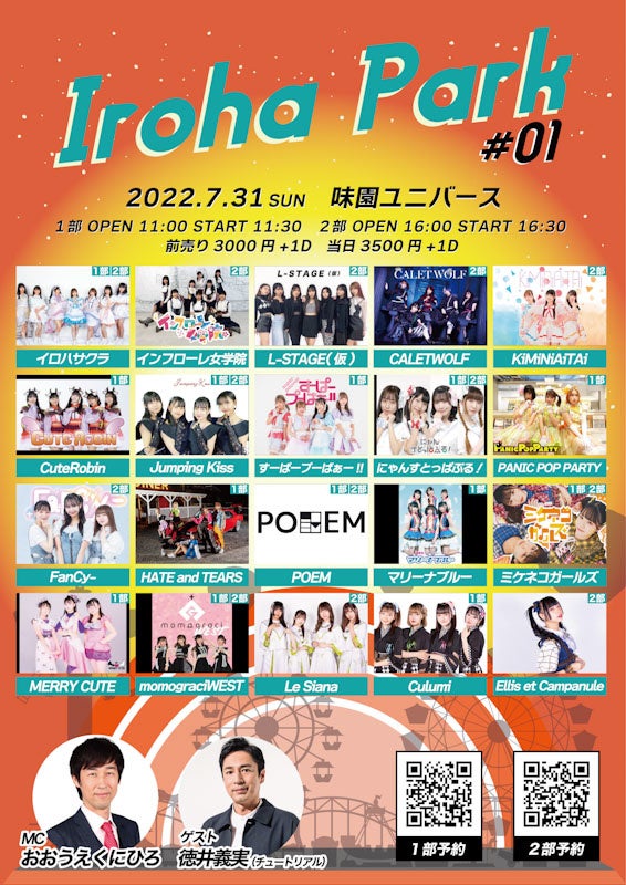 本イベントは「Iroha Park#1」と題し、アイドルライブの合間にゲストとのトークコーナーを設ける内容で実施する。(第一部11:30、第二部16:30開始)出演はイロハサクラ含め合計20組のアイドルが出演。