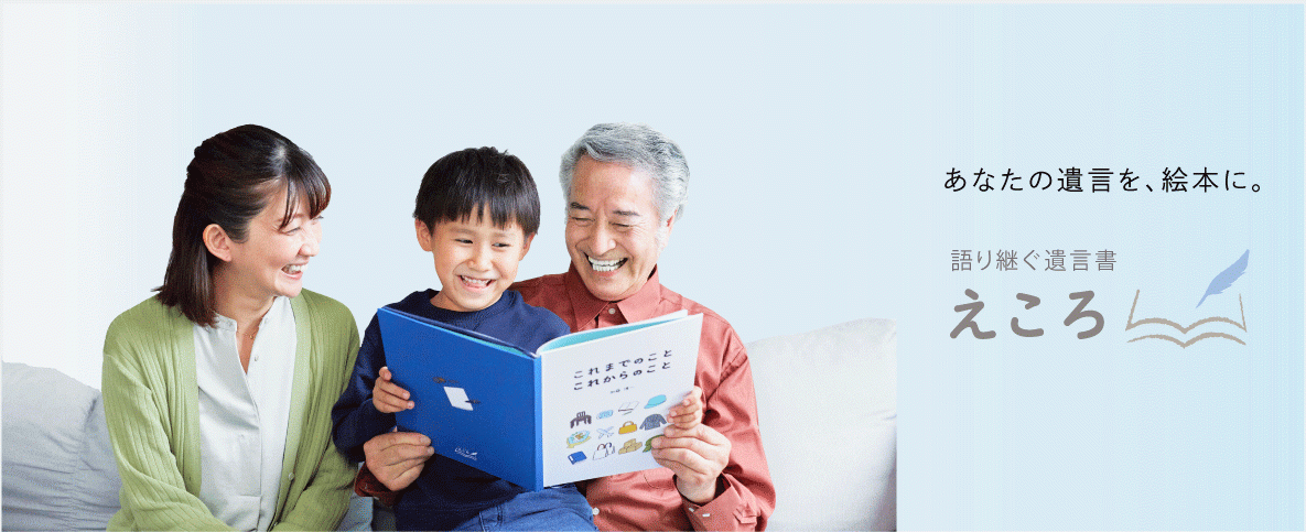 いつまでも自分の大切な家族には仲良くいてほしい ― 誰しもが願うことだと思いますが、残念なことに、遺言書がないことが原因で、家族間で起きてしまう相続のトラブルは絶えることがありません。「この状況を何とか変えたい」という思いから誕生した、えほん遺言「えころ」は、お客様の自分史や家族へのメッセージを一冊の絵本にして、同時に遺言書も作成させていただく全く新しいリーガルサービスです。