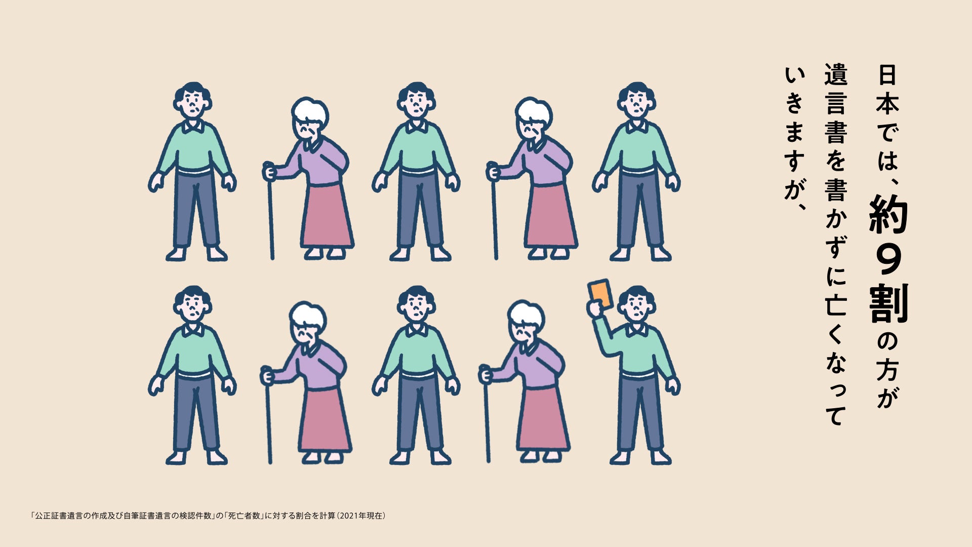 日本人の実に約9割の方が遺言書を残さずに亡くなりますが、調査結果(*1)によると、約6割が「遺言書がないことが相続トラブルの原因」と考えていて、子世代の65%が、「相続財産について不安がある」(*2)と答えています。