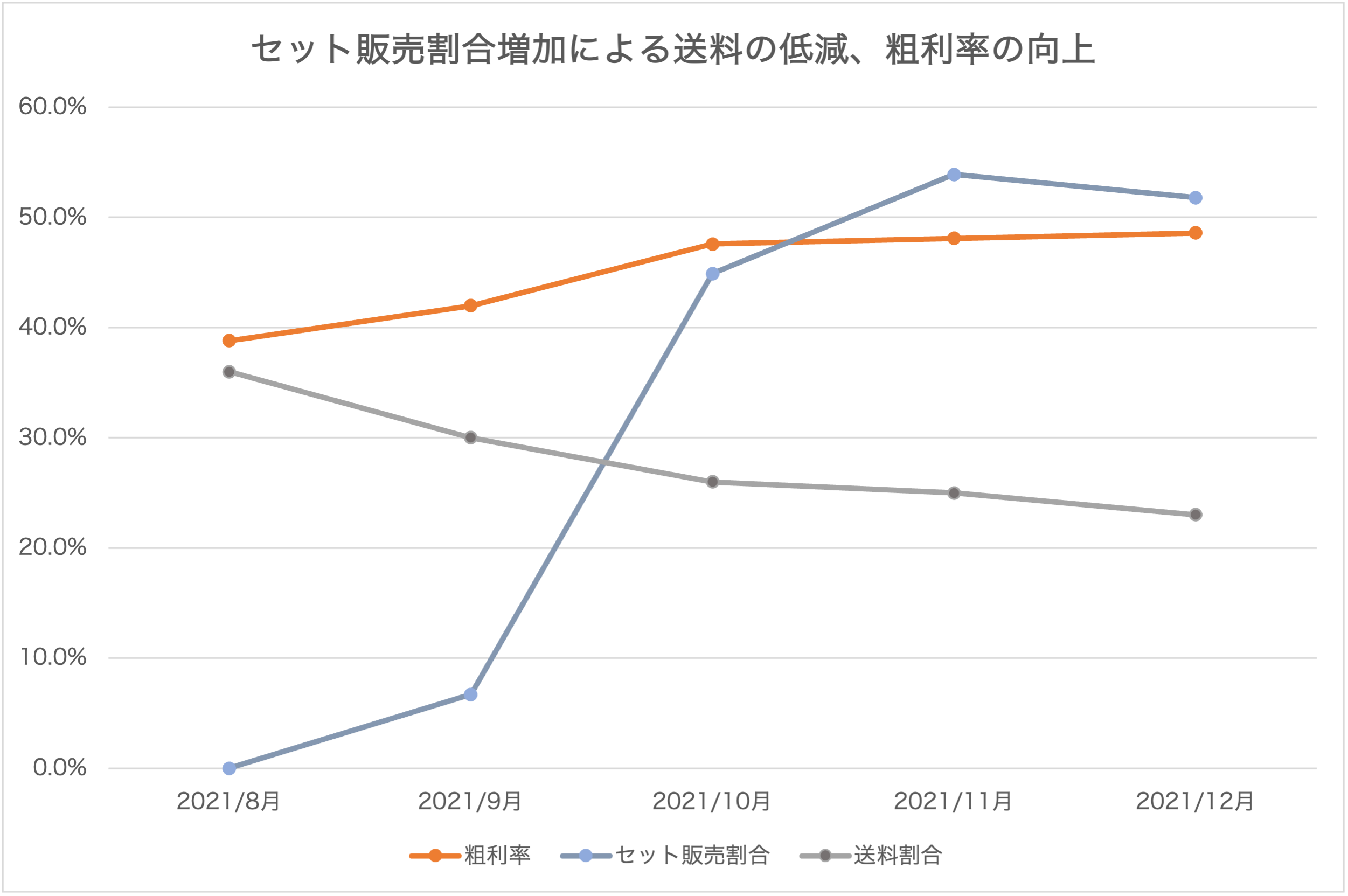 ・粗利率の高いセット販売の売上構成比を高め、送料・手数料を圧縮しコスト削減